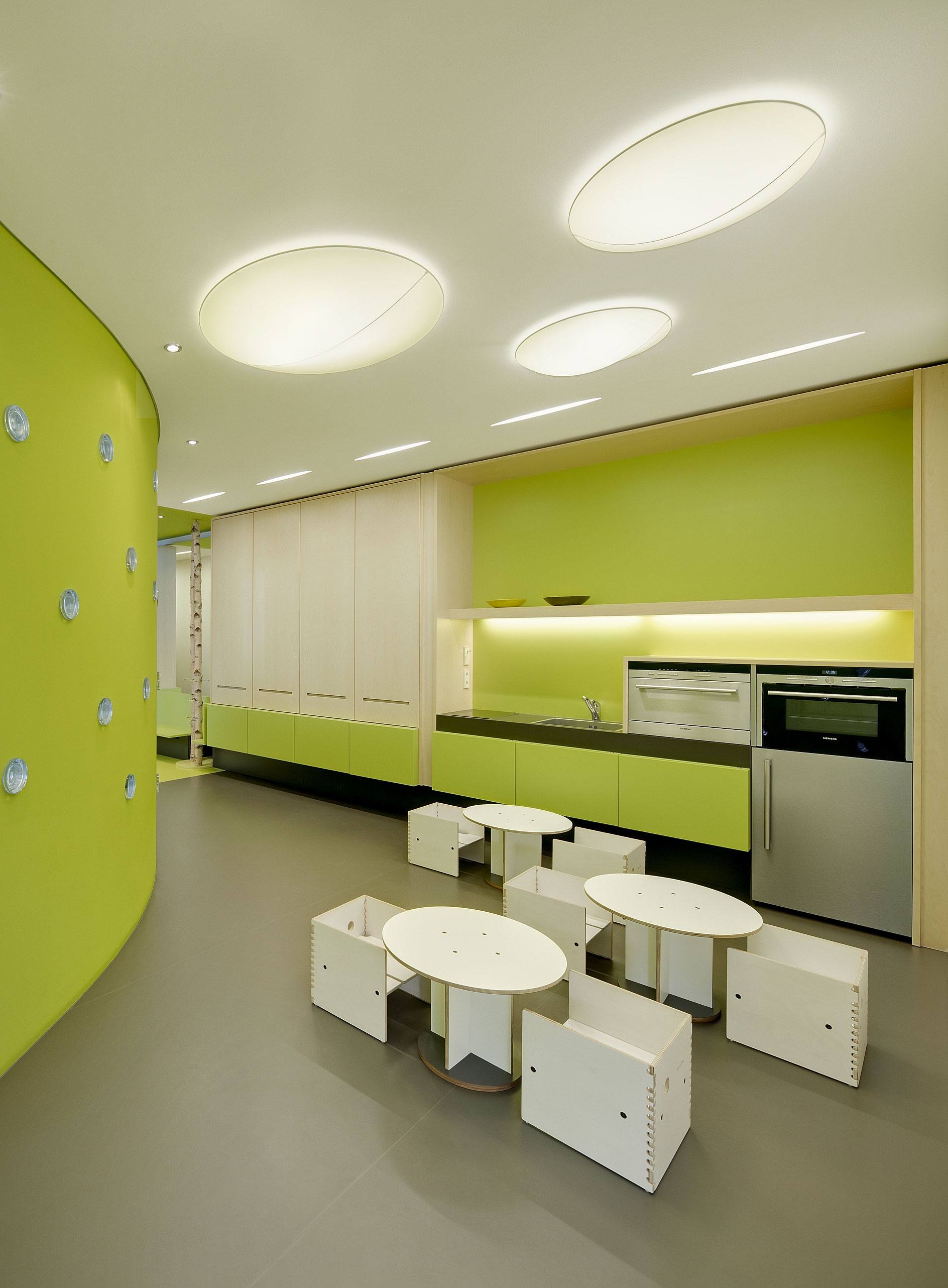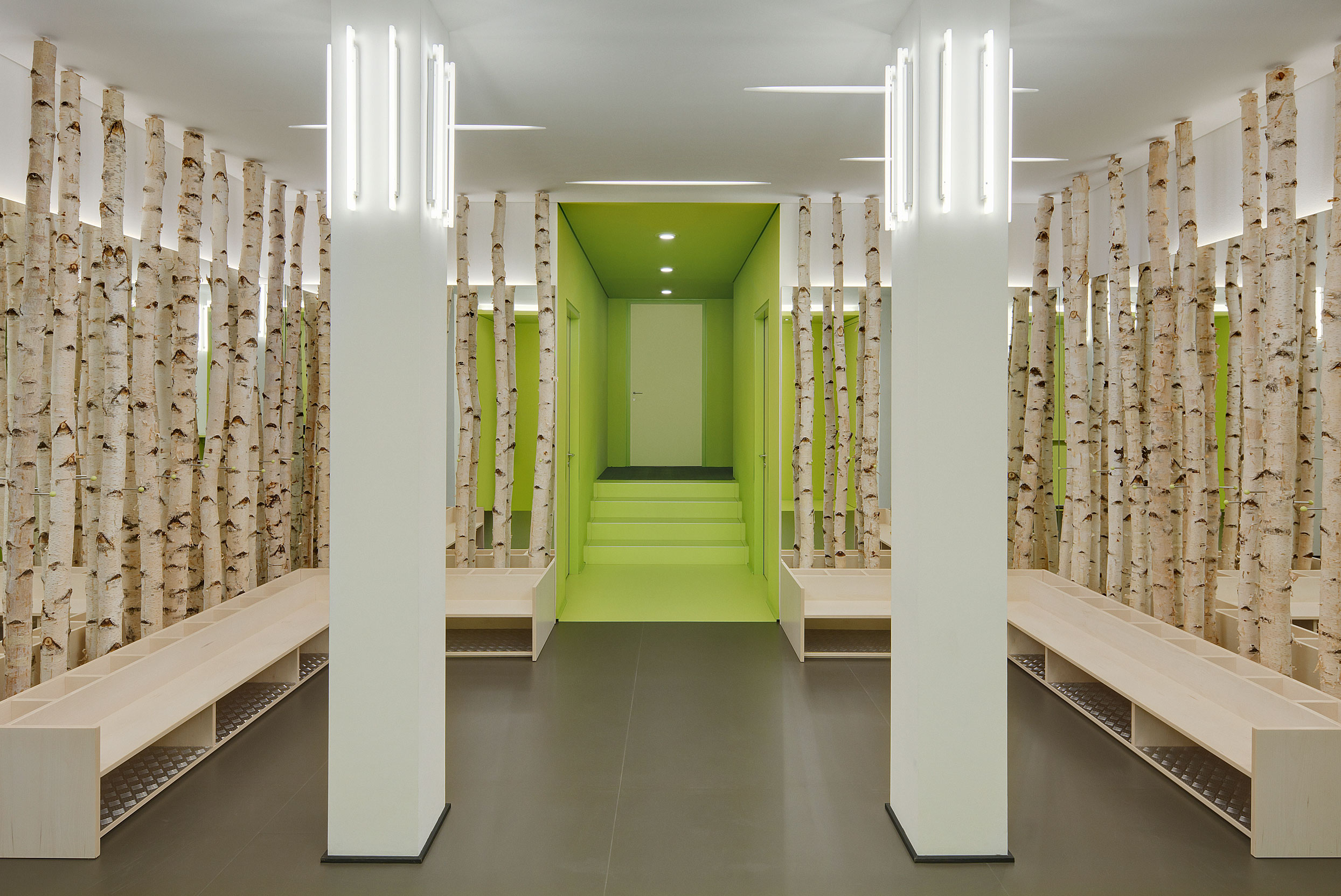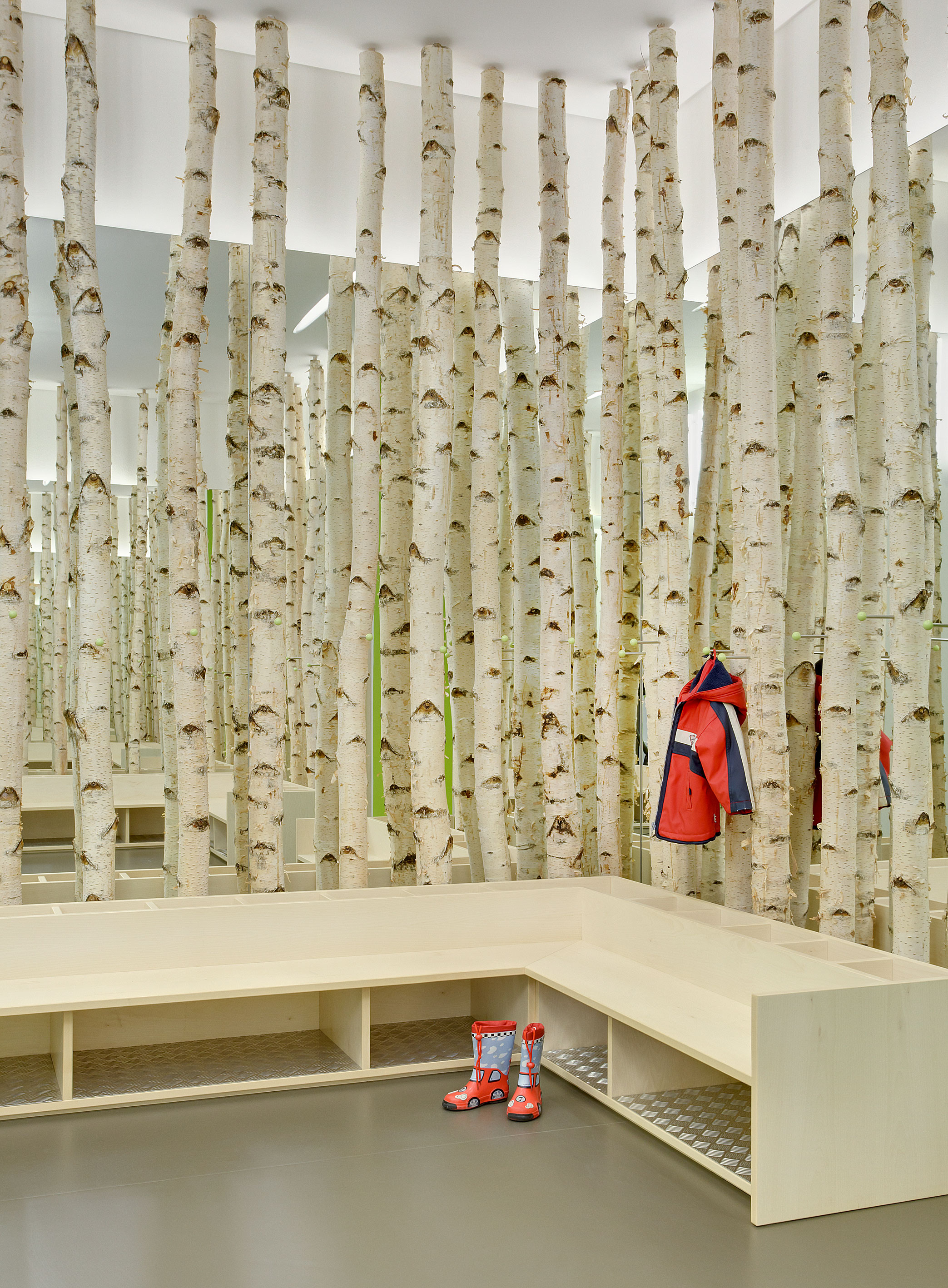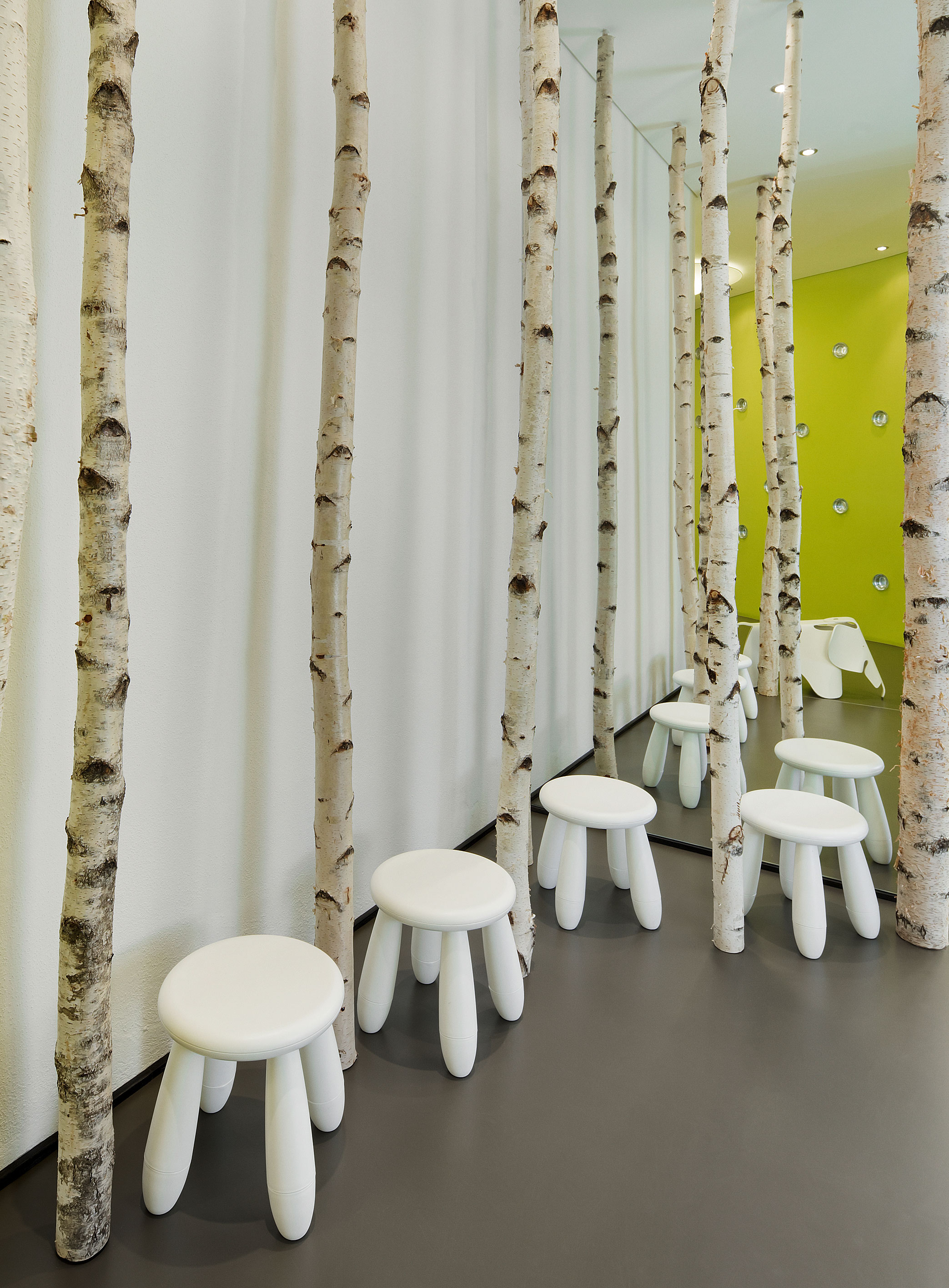 Manche Mitarbeiter des Kinderhauses sprechen vom Paradies und meinen das „Birkenwäldchen“, das ihnen so gut gefällt. Durch die zwischengestellten Spiegelwände wird das Wäldchen zu einem ganzen Wald – Verwirrung und Freude zugleich für die kleine Kundschaft.